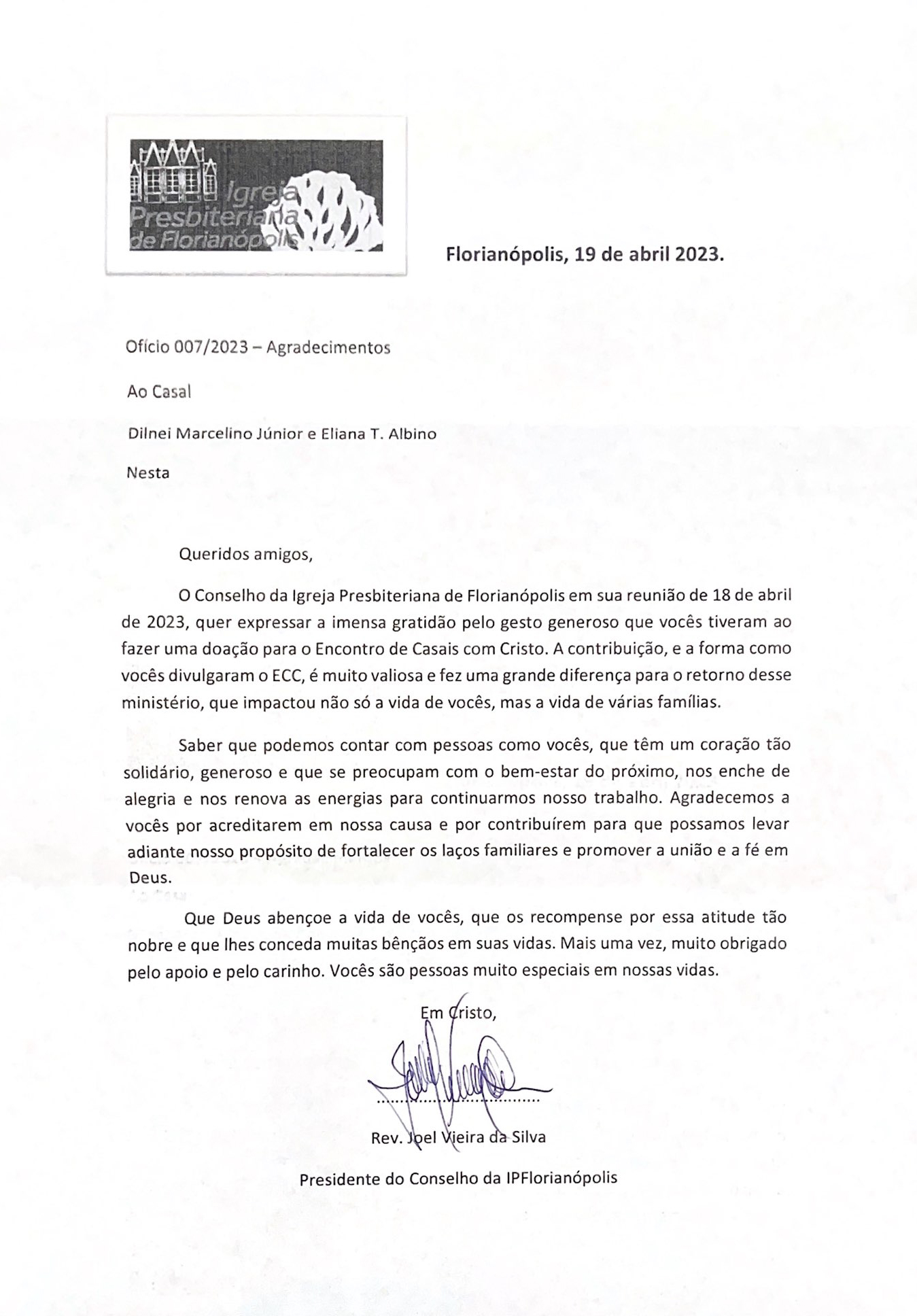 A carta da igreja, que eterniza o valor sagrado da nossa união.